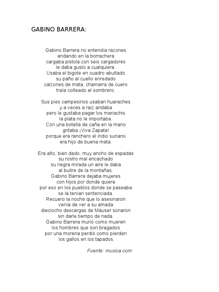 Letra Gabino Barrera Corrido - Al buitre de la montañas.